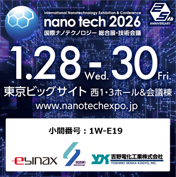 【出展のお知らせ】入居テナント「METALISM」様の参画企業である<EBINAX株式会社様/スズキハイテック株式会社様>が 『 nano tech 2026 ナノテクノロジー総合展・技術会議』に出展いたします。